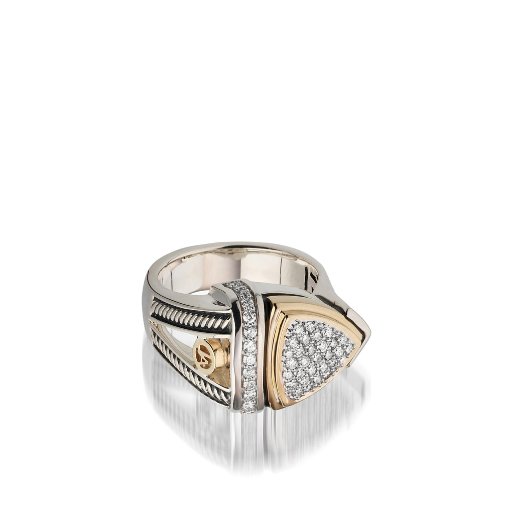 Arrive in style with this trillion and diamond sterling silver and 14 karat gold collection. Define your style with colorful trillion and diamond rich stacking bracelets, rings, pendant and earring styles.