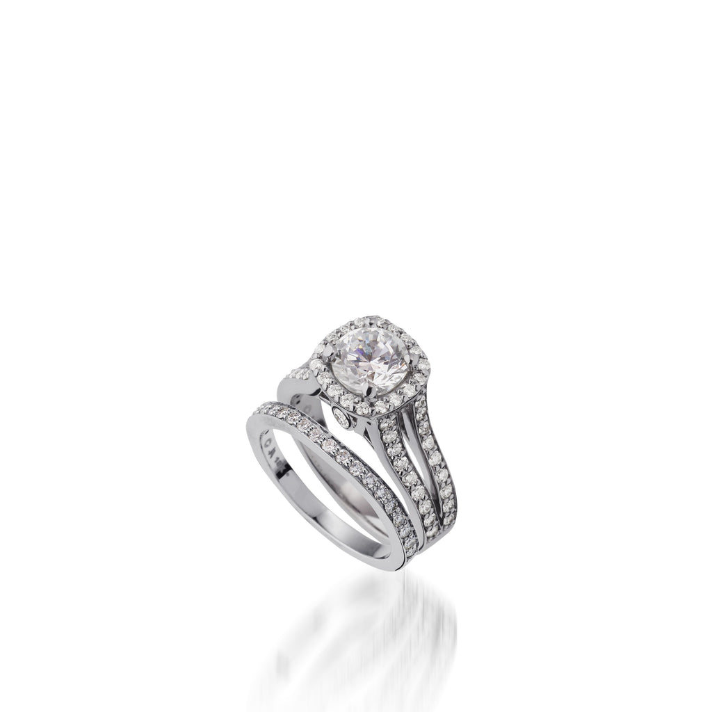 - Consider pairing with a Chiffon wedding band. This can be ordered at the same time to guarantee a perfect fit.