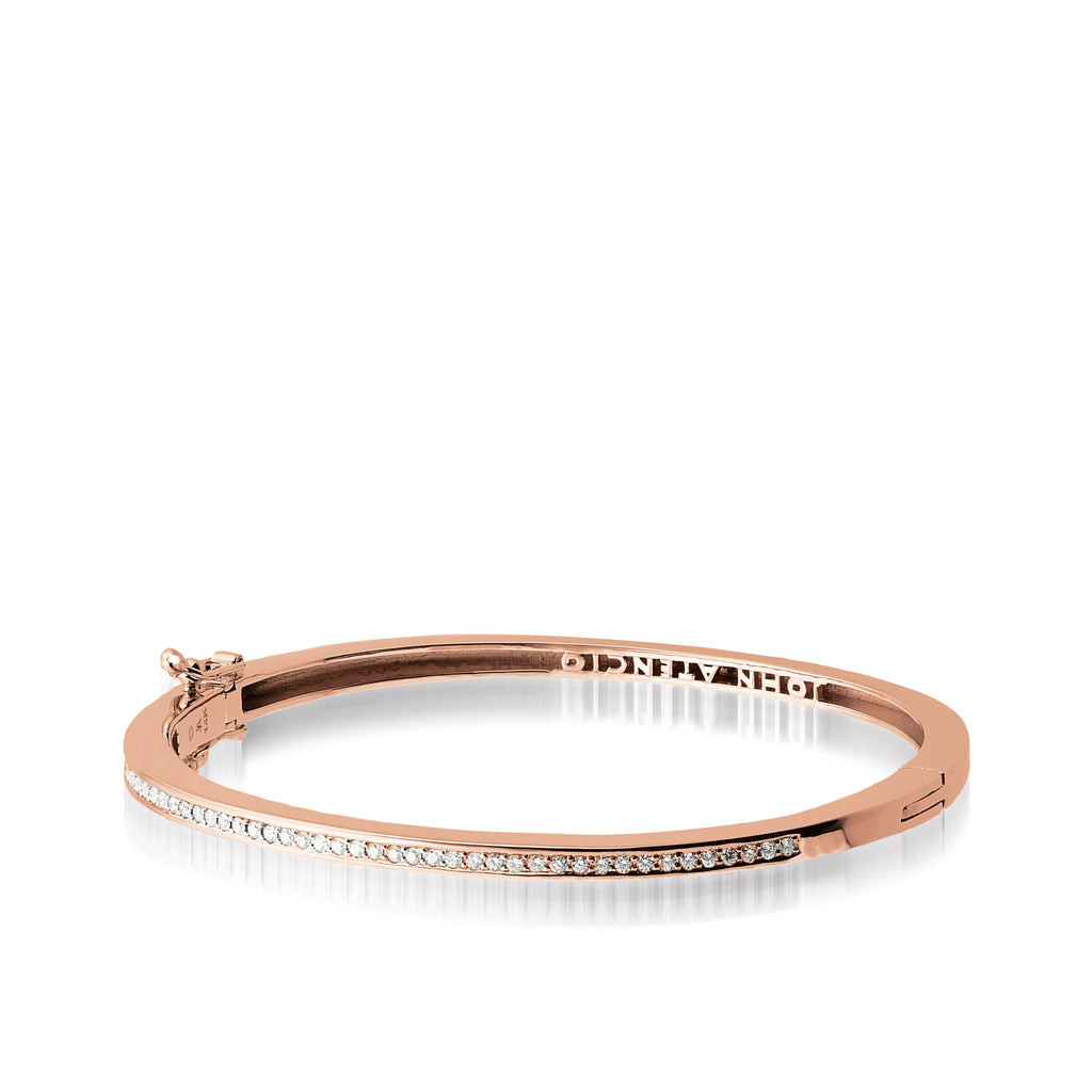 - Hinged bracelet measures 3mm wide, with safety clasp
