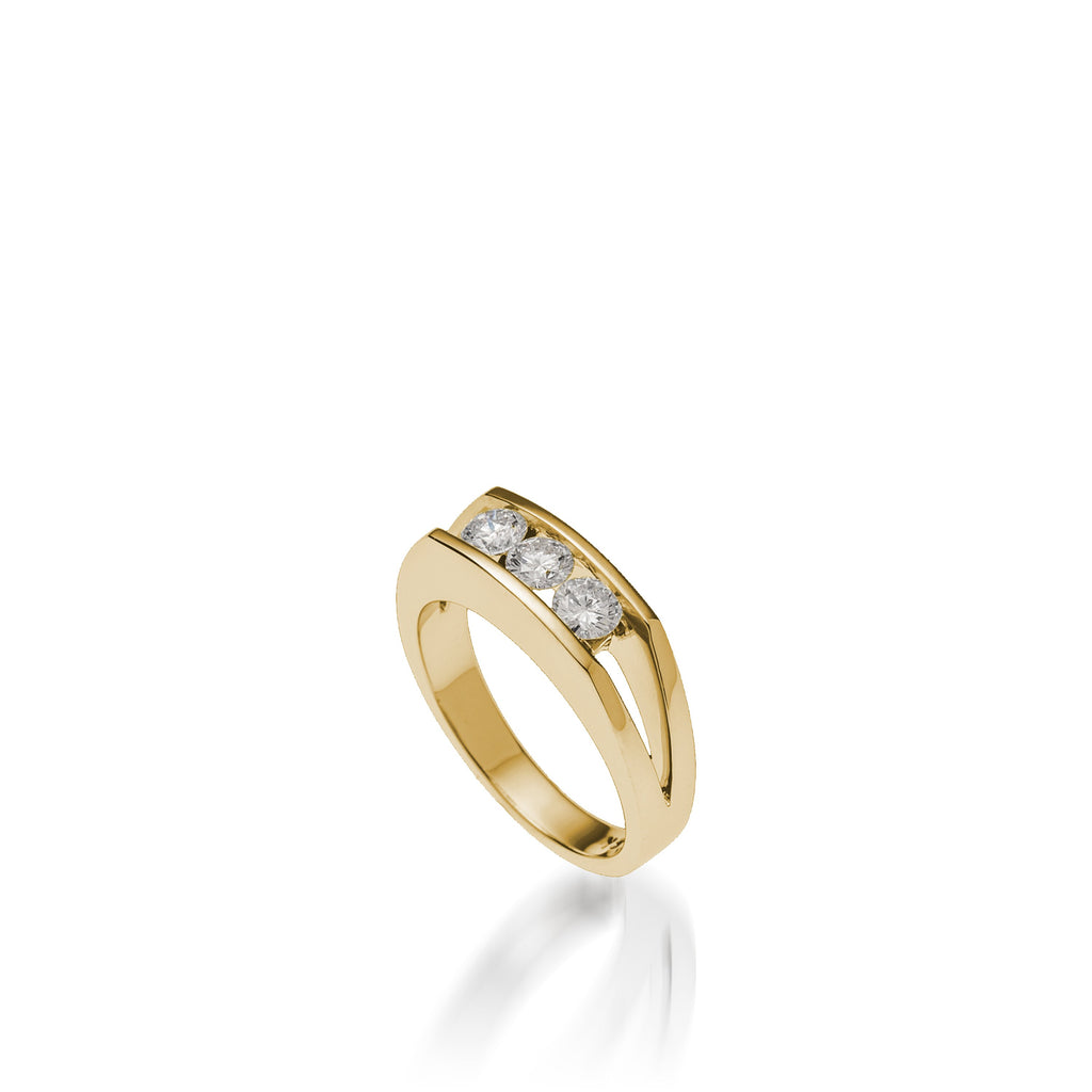 Women's 18 karat yellow Gold Lines 3-Stone Anniversary Ring
