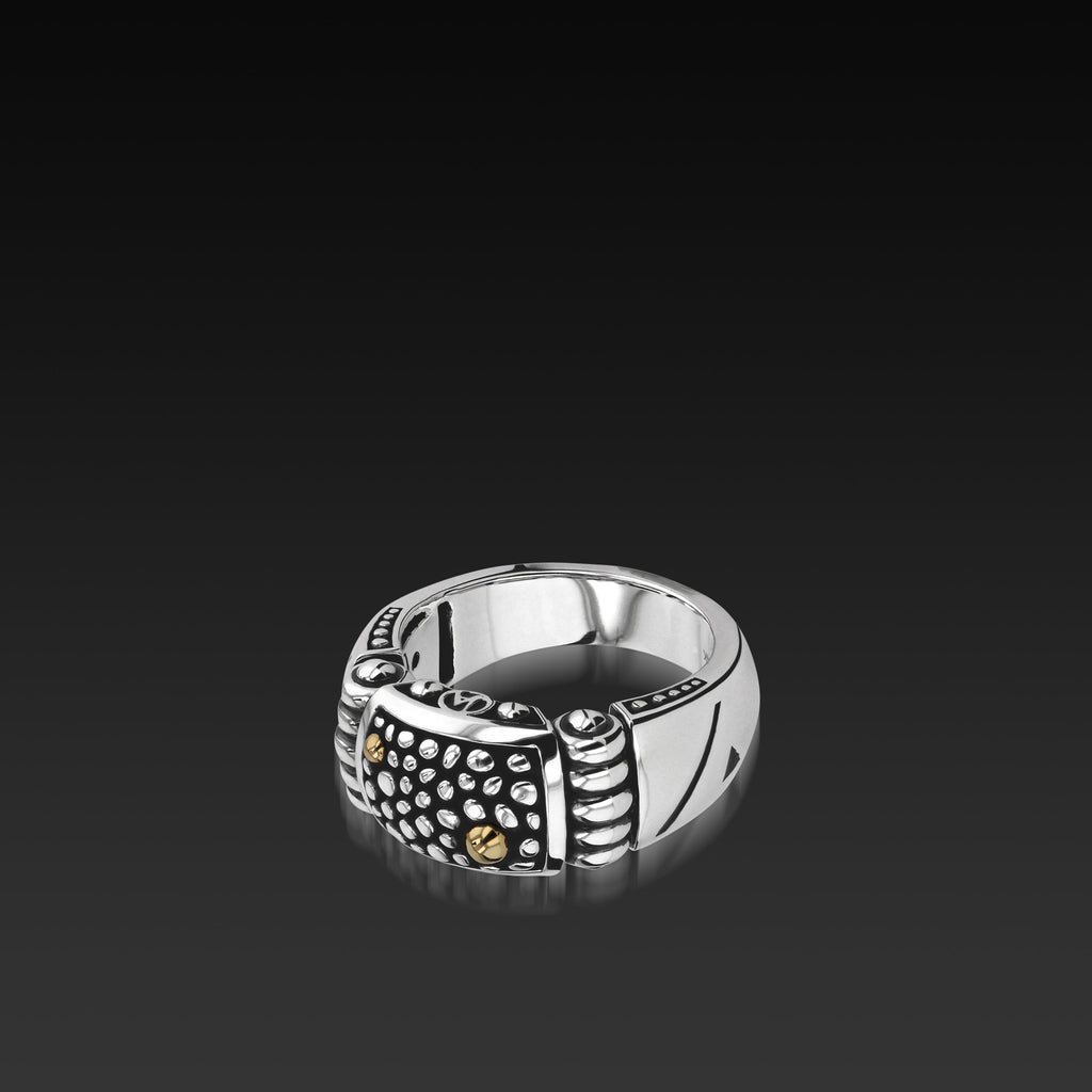 John blends bold, oxidized patterning with iconic circle, triangle and line symbols to create a uniquely personal statement in his newest Matrix Men's collection. John created these symbols as the three keys to communication, addressing the struggles that exist within each of us in balancing family and relationships.