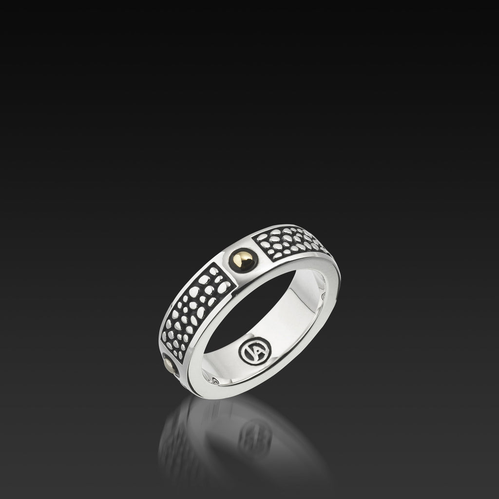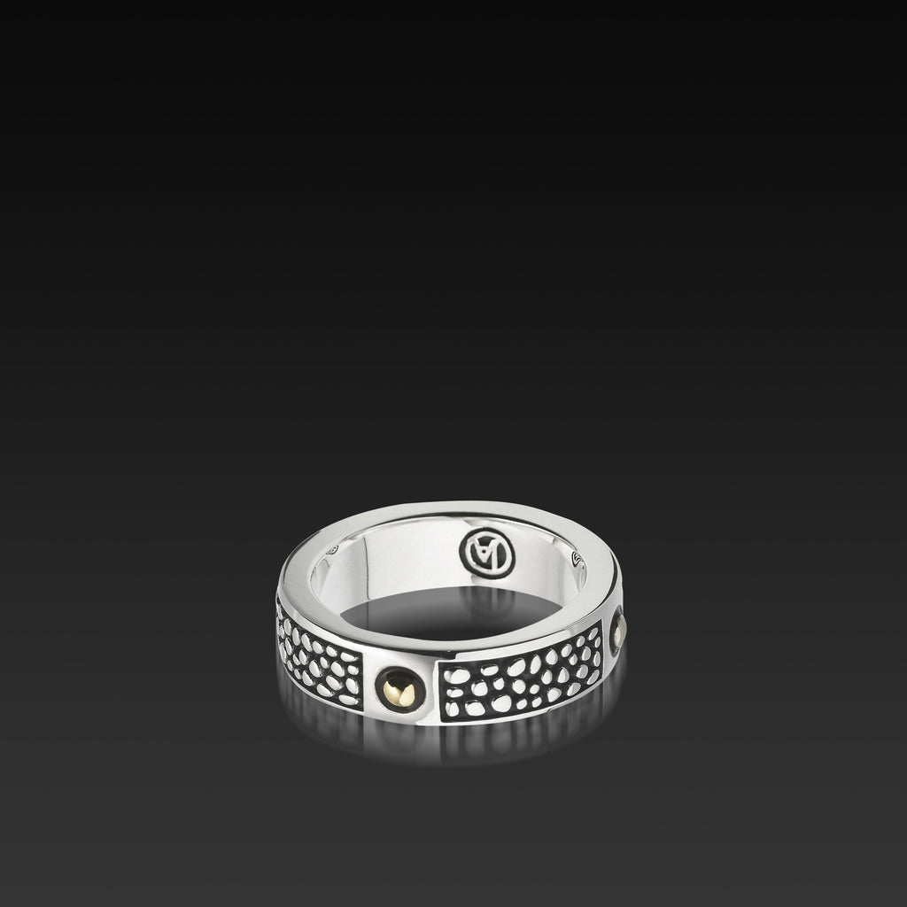 John blends bold, oxidized patterning with iconic circle, triangle and line symbols to create a uniquely personal statement in his newest Matrix Men's collection. John created these symbols as the three keys to communication, addressing the struggles that exist within each of us in balancing family and relationships.