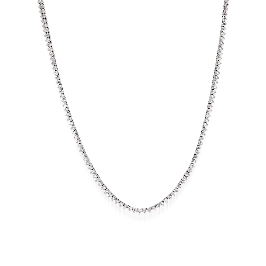 Ranging from E to I in Color and VS2 to SI1 in clarity, our latest John Atencio natural 3-pronged and lab 4-pronged diamond tennis necklaces are ethically sourced and carefully matched for brilliance, color, and beauty. Set in 14-karat white, yellow, or rose gold, each graduated Riviera and ever-classic Tennis necklace reflects the exceptional craftsmanship and quality that is consistent with John’s longstanding tradition.
