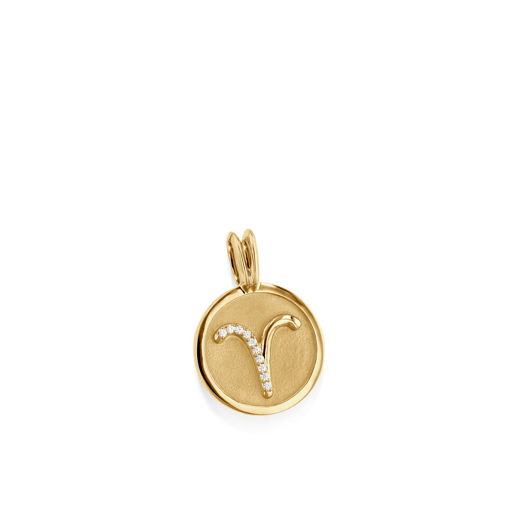 - Brushed and high polished gold with pavé diamond zodiac symbol