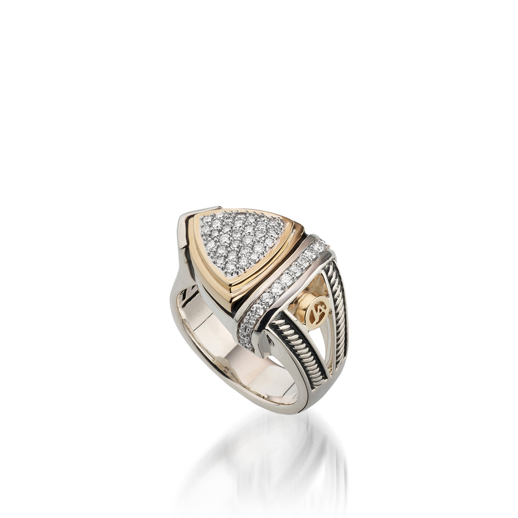 Arrive in style with this trillion and diamond sterling silver and 14 karat gold collection. Define your style with colorful trillion and diamond rich stacking bracelets, rings, pendant and earring styles.