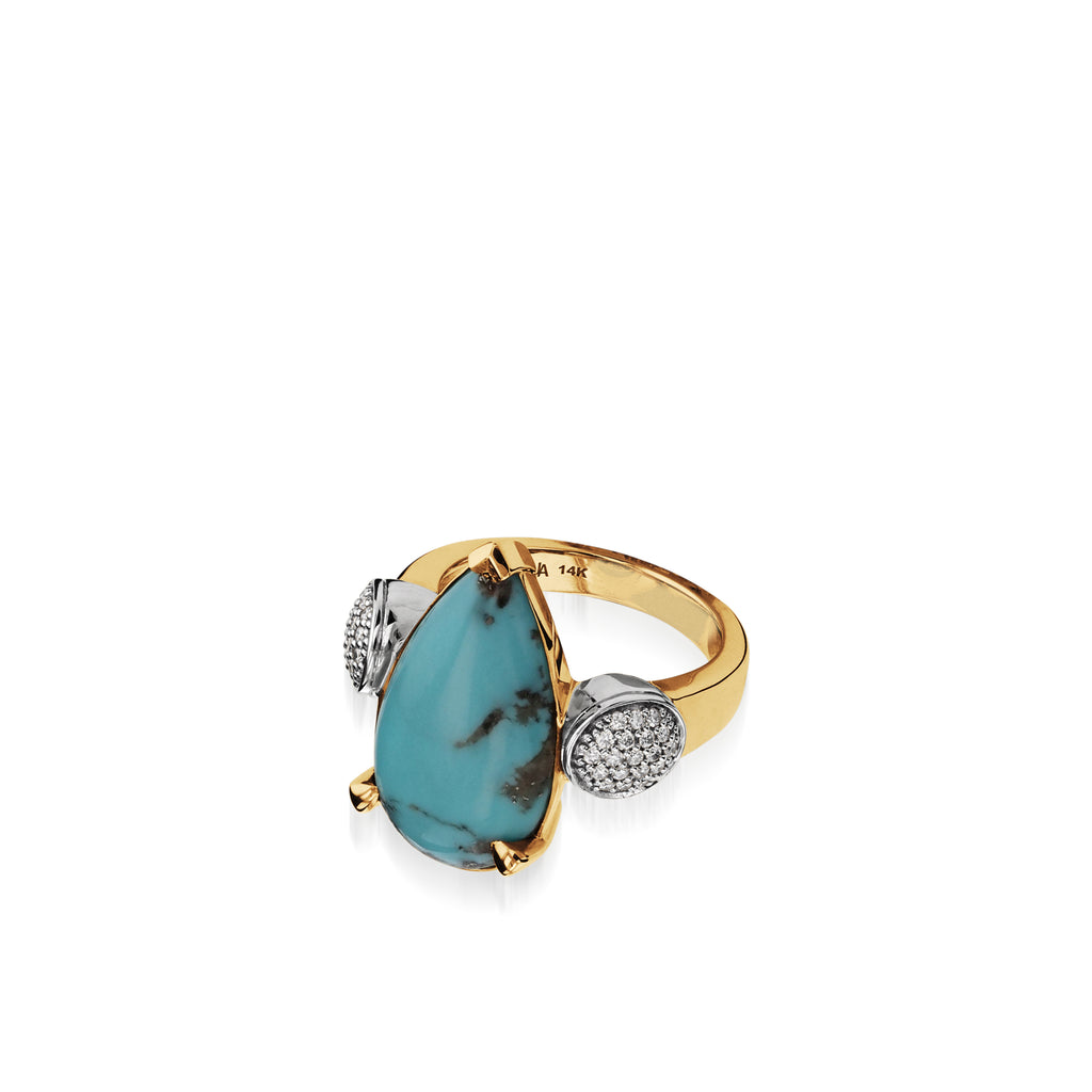 Inspired by the exquisite blue-green waters of Bermuda, John blends soft curves with matrix turquoise cabochons and dazzling pave diamonds for a brilliant new 14 karat gold collection. Consider Bermuda by John Atencio as your next escape.