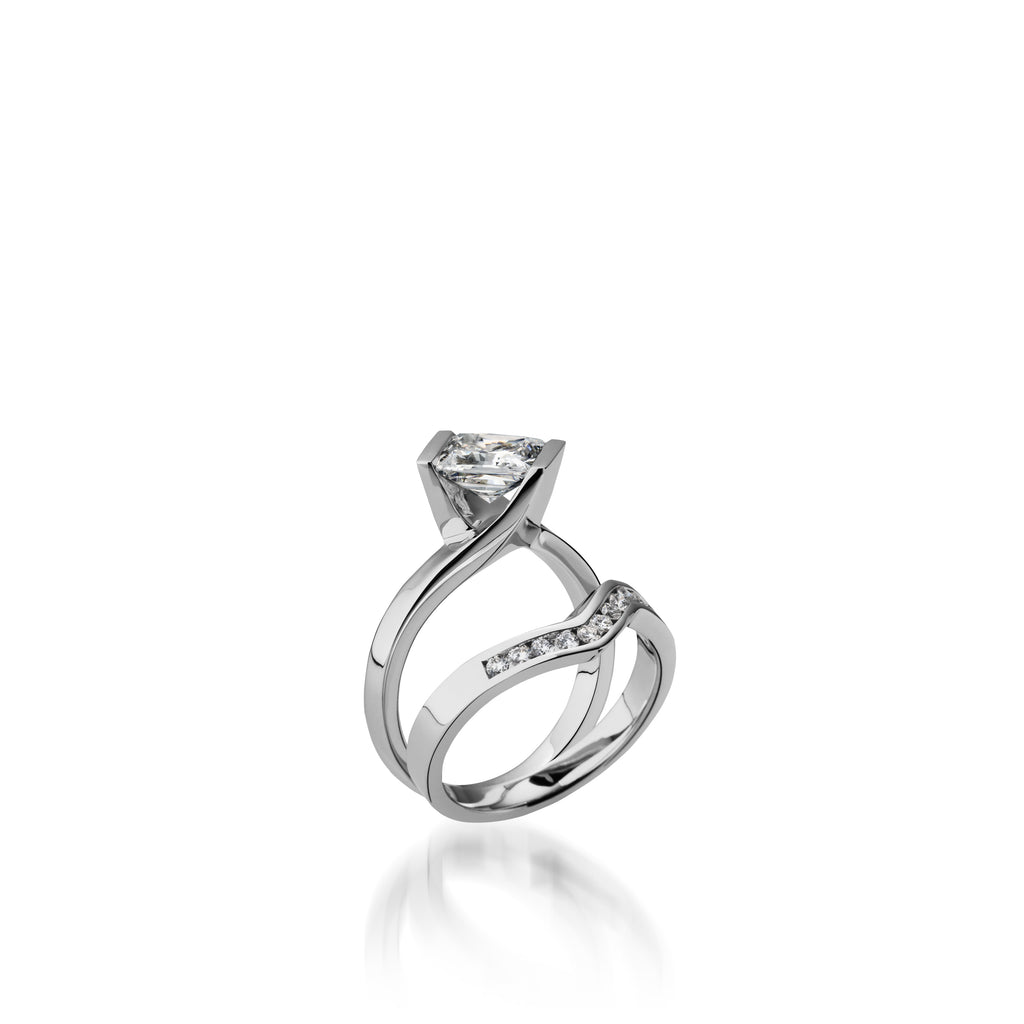 Intrinsic brings the princess cut to life. John began the design of Intrinsic from the top with the channel set diamond and added soft turns and twists to create this beautifully architectural solitaire engagement ring.