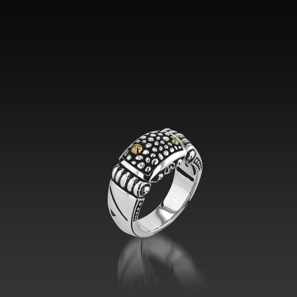 John blends bold, oxidized patterning with iconic circle, triangle and line symbols to create a uniquely personal statement in his newest Matrix Men's collection. John created these symbols as the three keys to communication, addressing the struggles that exist within each of us in balancing family and relationships.
