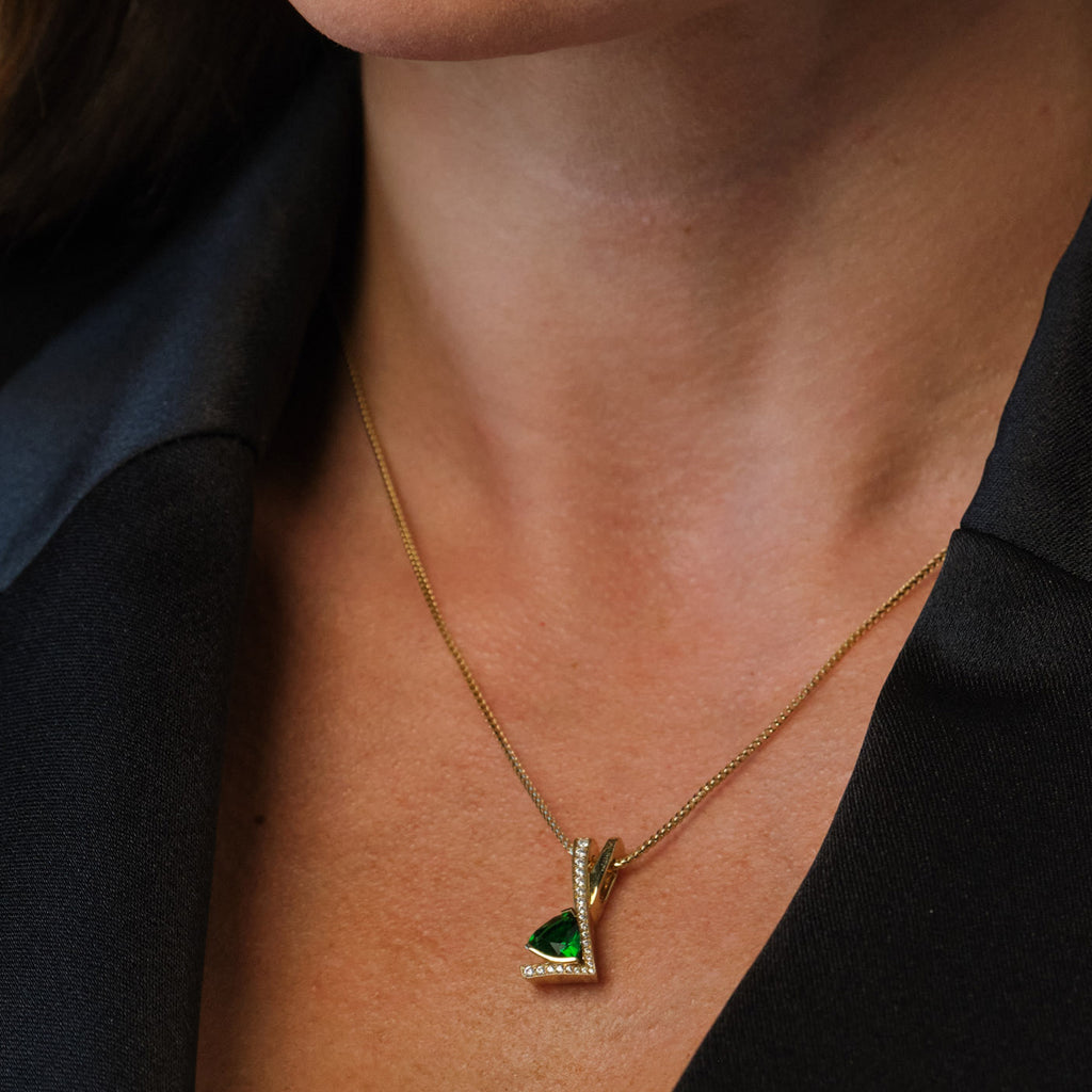 Pinnacle was first created to recognize John’s 40-years of success and celebrate a significant milestone with an iconic new design which blended rich pave diamonds, trillion tanzanite and his asymmetrical styling. This stunning collection now includes the mesmerizing beauty of chrome diopside and the latest Pinnacle petite styles, each delicately proportioned for everyday wear and layering.