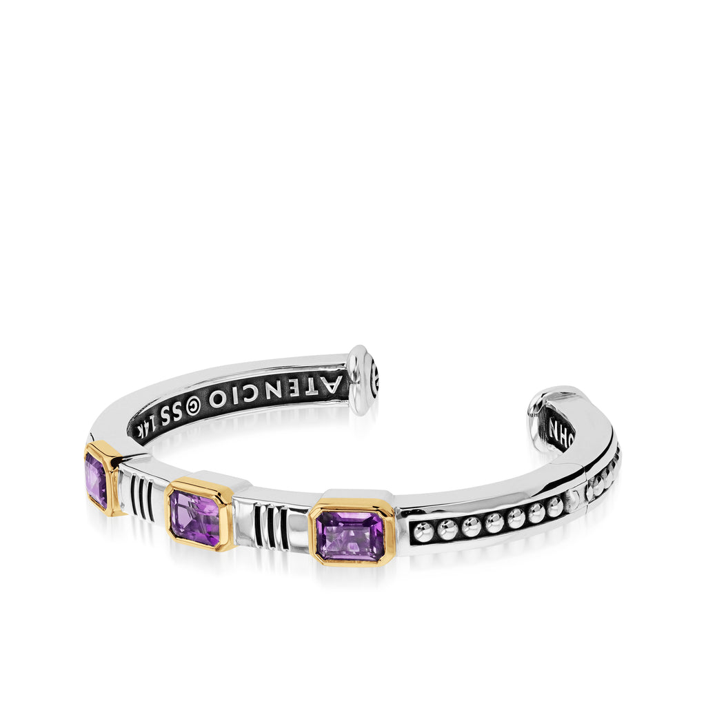 Discover the allure of Sahara, John’s latest sterling silver collection featuring exquisite emerald-cut gemstones and new shimmering pavé diamonds. Inspired by the captivating beauty of the Sahara Desert, this collection seamlessly blends John's contemporary artistry with timeless elegance. Iconic symbols—lines, circles, and triangles—are integrated into each necklace, ring, earring, and bracelet design. Whether you aim to brighten your look with vibrant gemstones, stack dynamic bracelets, or make a bold statement with rich pavé diamonds, the Sahara collection invites you to explore the pinnacle of modern sterling silver craftsmanship.